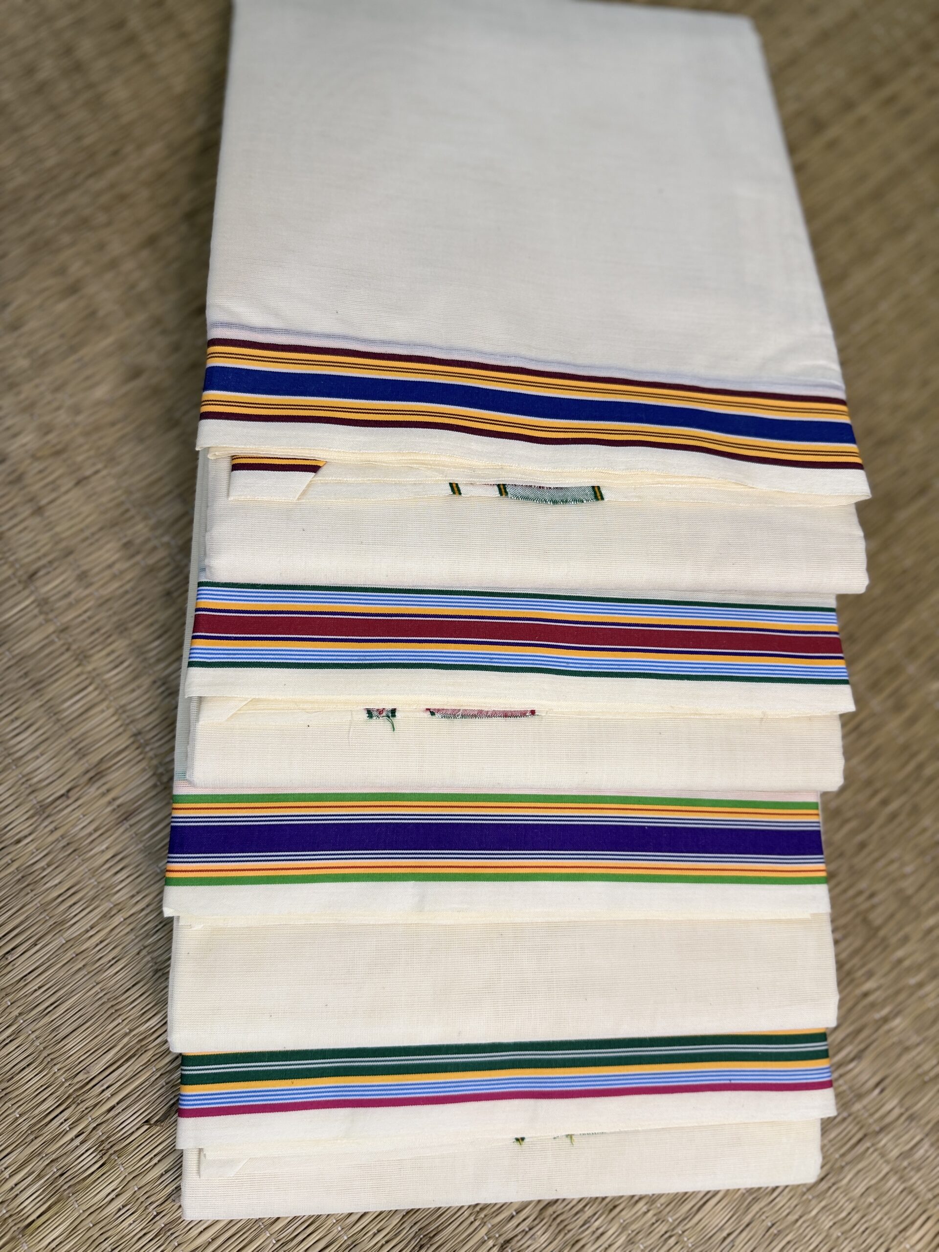 Premium fancy seer cotton dhoti with a rich textured weave and available in multiple colour options for traditional and ceremonial wear.