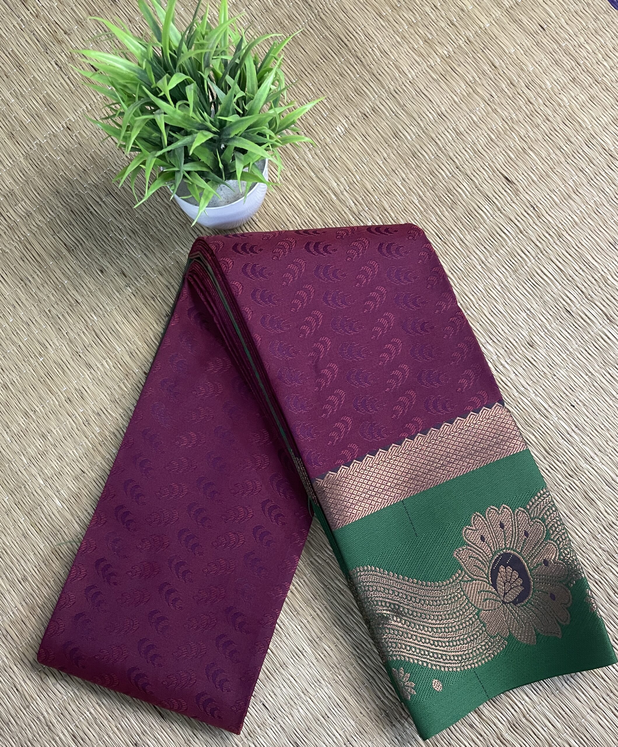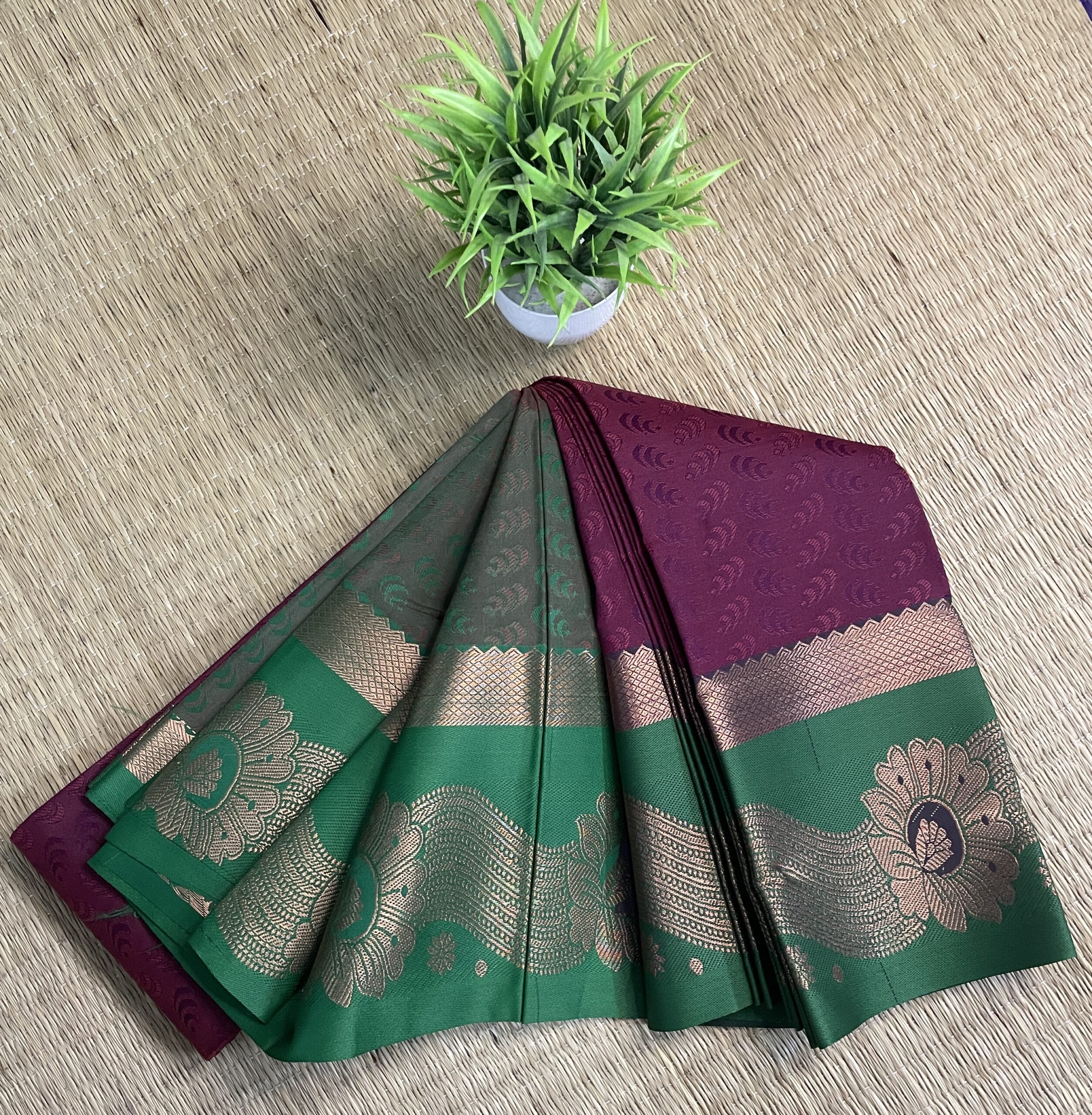 Crafted using Tana 50’s warp with 110 count, this saree offers a fancy soft texture and an effortless drape, ensuring comfort throughout the day. The rich pallu, combined with the elegant Meena border, makes this saree an ideal choice for festive occasions and special gatherings.